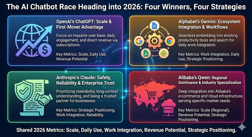 The AI Chatbot Race Heading into 2026: Four Winners, Four Different Strategies